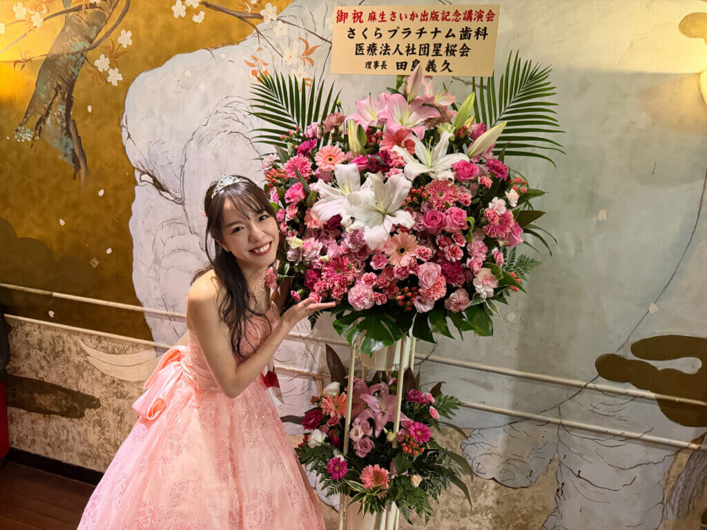 10年前のまだピアノしかできなかった頃から面倒を見て頂き、先生と同じように年中無休・労働時間とプライベートという区切りが存在しない毎日を経て、医院のお役にも立てるようになって嬉しいです。嬉しいメッセージと、ドレスにピッタリのピンクのお花をありがとうございます!
